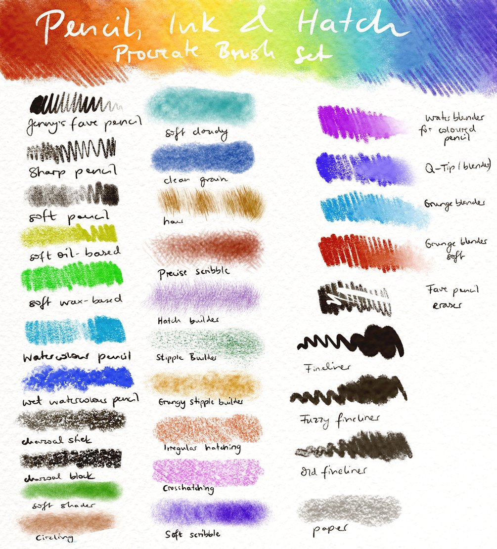 Jenny's Pencil, Ink & Hatch brush set - 30 Procreate brushes + 1 digital canvases